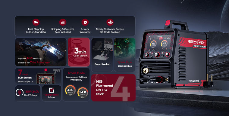 - Intuitive Interface: With the YesWelder IntuiWeld™ interface, you can make quick and precise adjustments through a simple knob twist, with every setting displayed clearly and intuitively.
