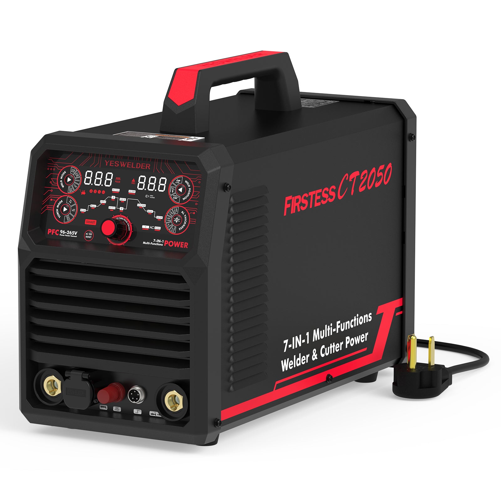 Combining the most potent welding and cutting tools into an easy-to-use professional machine, The Firstess CT2050 is a workhorse, allowing you to cycle through AC/DC TIG, AC/DC Pulse TIG, Stick Welding, Plasma Cutting, and more at the tap of a button.