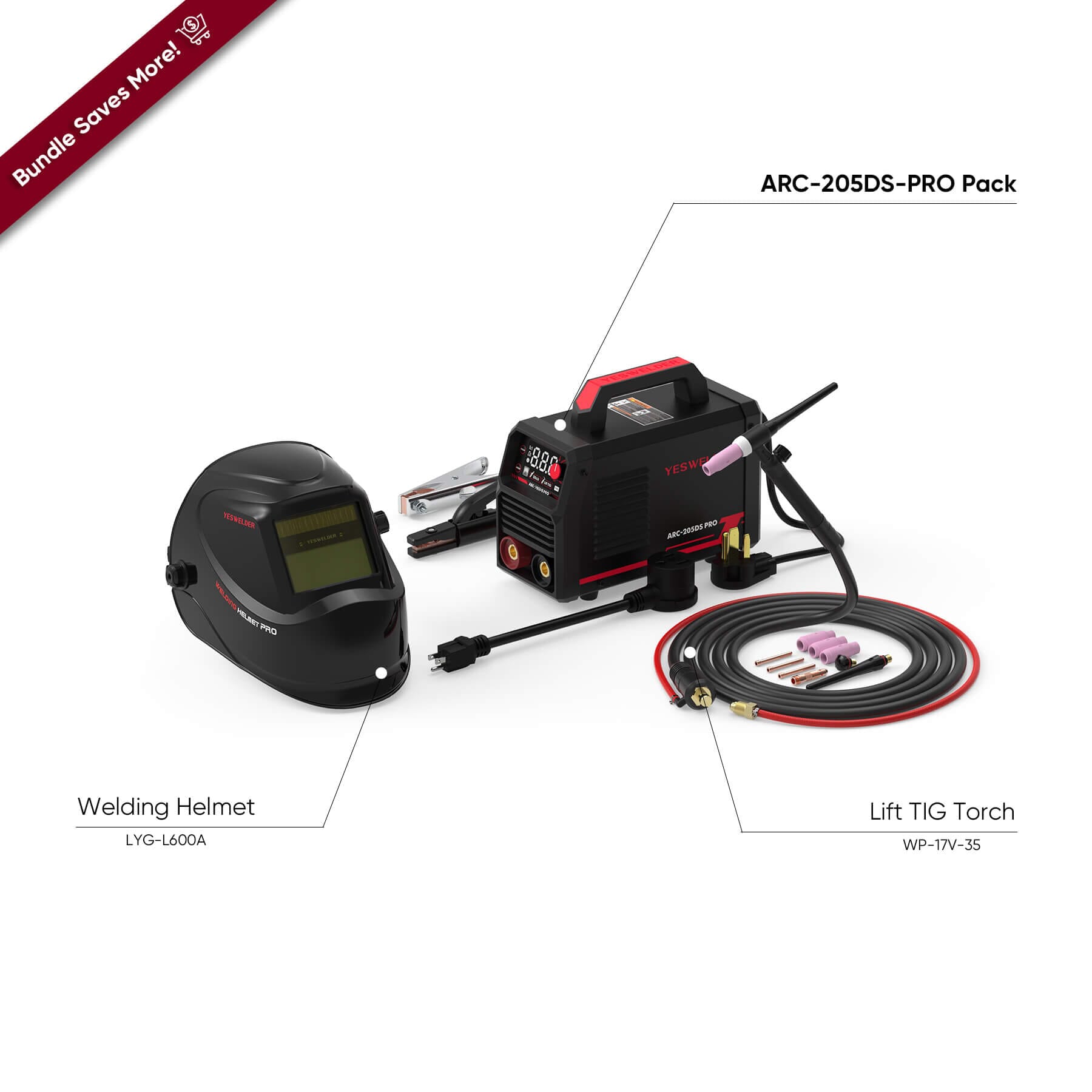 ARC-205DS-PRO Digital Display 110V/220V Stick & Lift TIG In One Stick Welder Hardware > Tools > Welders & Plasma Cutters YesWelder Welder+Combo Bundle