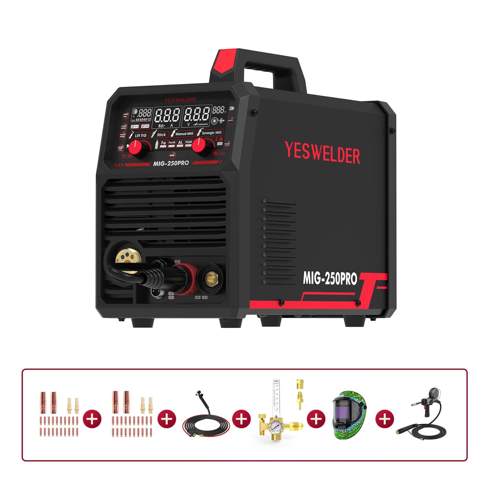 - Output Current: 40-250A (MIG)20-225A (Stick)20-250A (TIG)