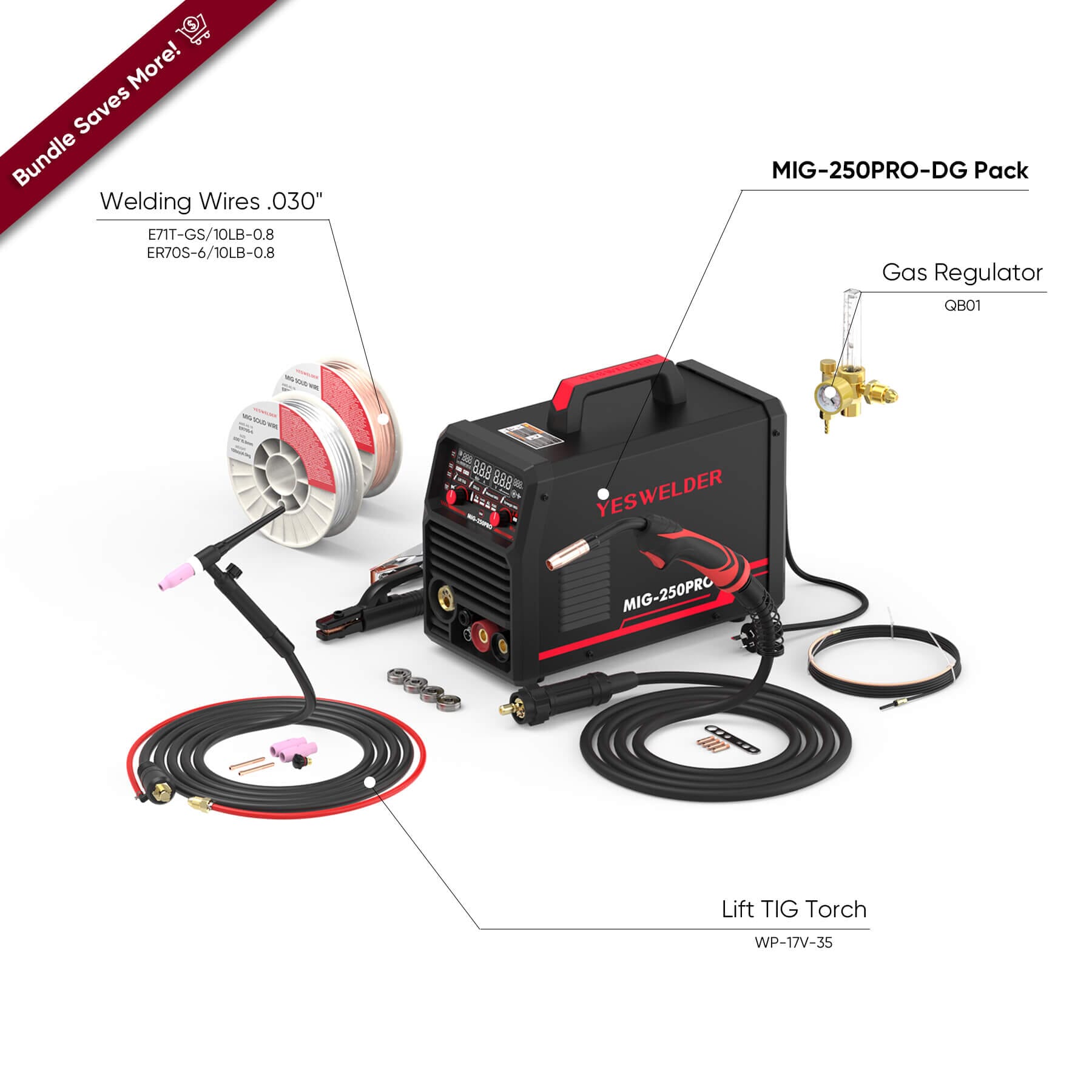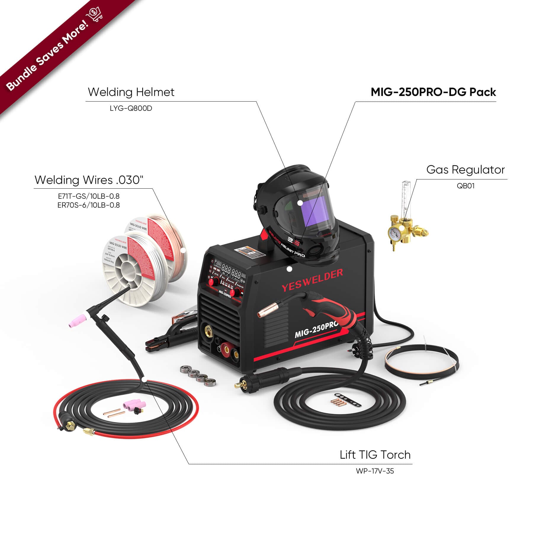 - Output Current: 40-250A (MIG)20-225A (Stick)20-250A (TIG)