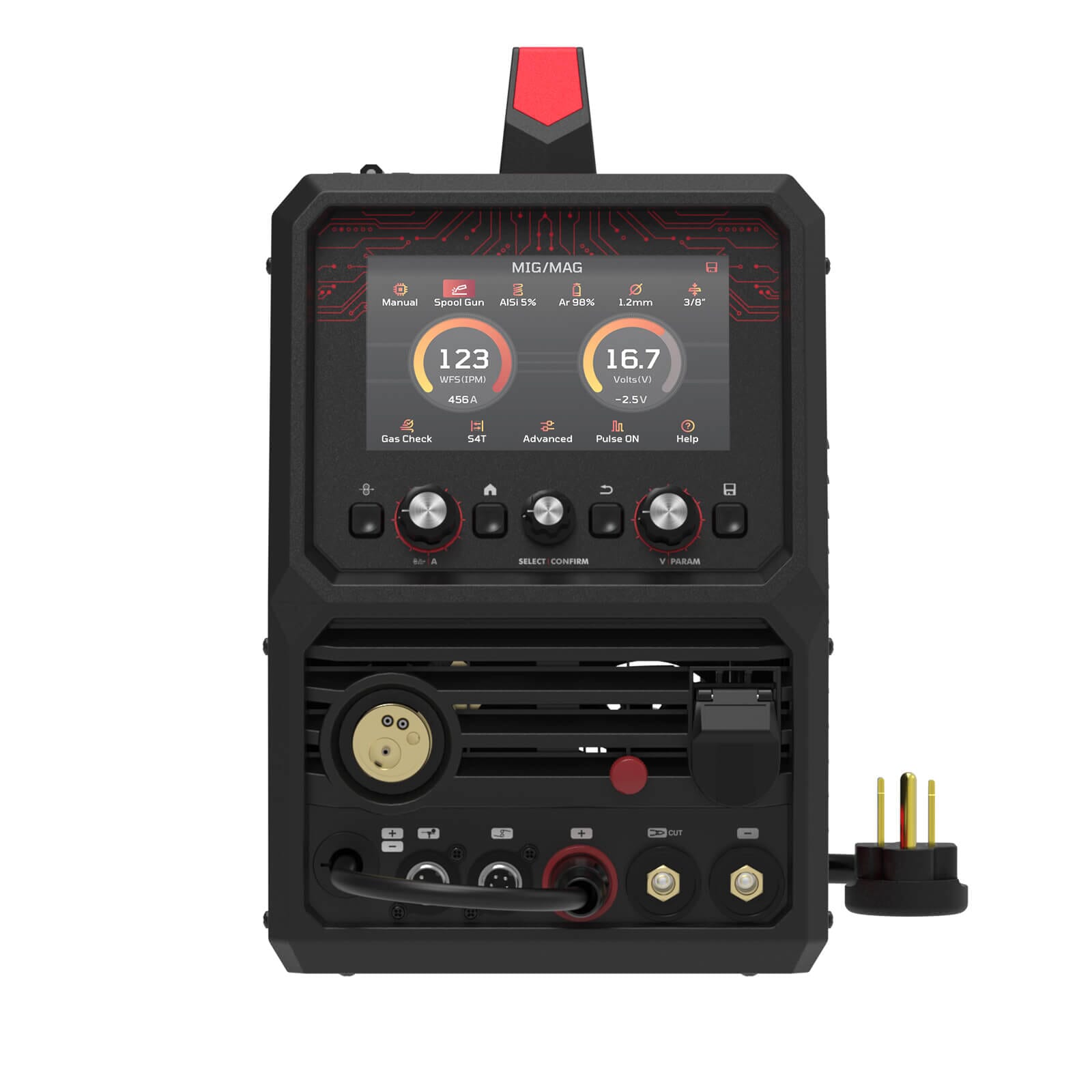 A high-resolution 7-inch screen makes every adjustment easy. See your settings clearly from any angle, even in harsh light. The intuitive interface means you're never digging through menus when you should be welding.